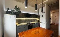 Проведена проводка, выполнен ремонт санузла, на полу постелен линолеум, стены выровнены и готовы к покраске или поклейки обоев, готова встроенная кухня.