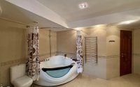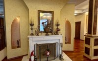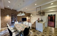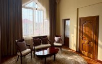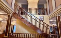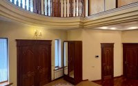 Интерьер сочетает изысканность и качество: идеально выровненные стены, паркет, керамогранит из Германии и Индии, тёплые водяные полы, итальянские люстры. Экологичные материалы и продуманная система отопления обеспечивают комфорт круглый год.
