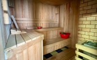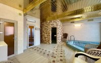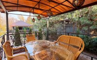 На участке расположен гостевой дом 116 м², где царит атмосфера отдыха: бильярдная, бассейн, сауна, душевая, санузел, кухня с выходом на летнюю террасу.