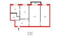 🔹 Площадь: общая — 56,1 м², кухня — 8,5 м²