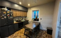 В доме косметический ремонт, на полу линолеум. натяжные потолки во всех комнатах, санузел совмещен, так же стены в пвх панель, на полу керамогранит.