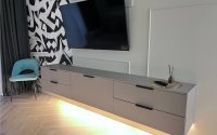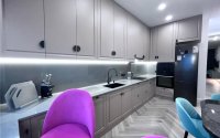 • Кухня: столешница и фартук из корейского камня, обеденный стол из камня, посудомоечная машина