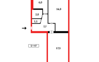 Общая площадь: 43 кв.м., кухня 6 кв.м.