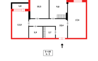 Площадью - 68,3 кв.м, кухня 9,8 кв.м. Солнечная сторона, не угловая.