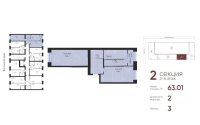 63.01 м², кухня – 12.44 м²