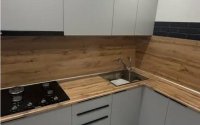 Установлен современный кухонный гарнитур с техникой (плита, вытяжка)