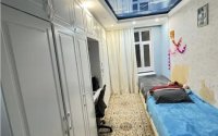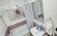 Общая площадь 69,9 м². Комнаты раздельные: спальня, детская и гостиная, кухня раздельно. Санузел раздельный. Сделан качественный ремонт с использованием дорогих материалов, установлена встроенная мебель. На полу ламинат, в спальнях и прихожей большие вместительные шкафы. На окнах установлены защитные решётки для детей и москитные сетки. В одной из спален оборудован учебный стол с полками для хранения книг и принадлежностей. Санузлы облицованы кафелем, на кухне установлен 5-ступенчатый фильтр воды, встроенная варочная панель и духовка.