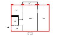 Квартира - студия (перепланировка оформлена) общей площадью 45кв.м расположена на 5м этаже 5и этажного панельного дома 1960 года постройки, крыша дома отремонтирована в 2024 году, подвал в хорошем состоянии - есть кладовая, центральное газоснабжение, косметический ремонт, гардеробная, санузел совмещенный (стены в кафеле), окна пластиковые, балкон остеклен, батареи отопления биметалик, установлен кондиционер, входная дверь бронированная, счетчики, домофон.