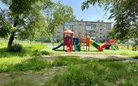 Новый детский городок и футбольное поле во дворе