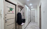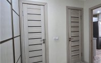 В квартире выполнен косметический ремонт, окна пластик, балкон остеклен пластик, полы линолеум, натяжные потолки, трубы пластик, счетчики воды, санузел раздельный выложен кафельной плиткой, новая входная металлическая дверь.