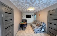 Выполнен косметический ремонт. Сантехническая разводка пластиковая, радиаторы отопления чугунные. Напор воды хороший. Электропроводка на автоматических выключателях. Окна пластиковые. Плиточная отделка потолка, декоративная отделка стен, напольное покрытие линолеум. Вся мебель остается, техника частично по договоренности. Межкомнатные и входная дверь новая.