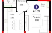 45.59 м², кухня – 11.9 м²