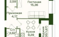 38 м², кухня – 10 м²