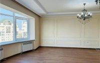 Квартира после капитального ремонта: установлены новые межкомнатные двери, сантехника, пластиковые окна и кондиционер. Планировка продуманная — кухня-студия площадью 48 кв. м и три изолированные комнаты. Общая площадь по документам — 140,6 кв. м, жилая — 88,8 кв. м. Квартира без мебели, полностью готова к заселению.