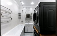 — Большая прихожая со встроенным шкафом на всю длину коридора (глубина 50–55 см — удобно для хранения одежды, хозяйственных вещей и утвари)
