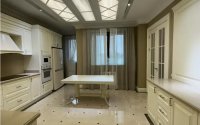 Продаётся 4-комнатная квартира, фактически 5-комнатная благодаря отдельному кабинету. Лифт поднимается сразу в квартиру, есть консьерж и видеодомофон. Площадь — 190 кв.м, кухня 20 кв.м. В квартире два балкона, три санузла, две гардеробные и прачечная. Сделан дизайнерский ремонт с использованием дорогих и качественных материалов: сантехника Villeroy & Boch, окна Rehau, мрамор, натуральное дерево, испанский кафель, техника Smeg. Установлены тёплые полы и кондиционеры. В квартире никто не проживал — состояние абсолютно новое.
