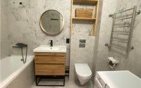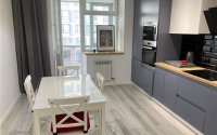 Встроенная бытовая техника: холодильник, посудомоечная машина, духовой шкаф, микроволновая печь.