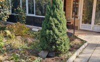 — Много плодовых и хвойных деревьев, цветов, кустарников.