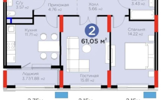 61.15 м²