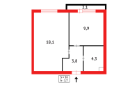 38.2 м², кухня – студия