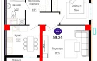 59.34 м², кухня – 11.1 м²
