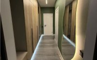 Отделка выполнена в современном стиле: керамогранит и ламинат на полу, дизайнерское освещение, стильные решения во всех комнатах.