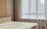 стиральная машина, сушильная машина, робот-пылесос моющий, с самоочисткой, вся бытовая техника встроенная, в каждой комнате кондиционер, ТВ, с подключенным Алма-тв и интернетом, кровать и матрац фирмы Аскона, диван, в мокрых точках установлены датчики протечки воды, теплые полы, дорогой свет, сантехника фирмы