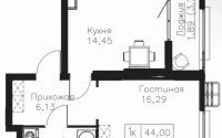 44 м², кухня – 14.45 м²
