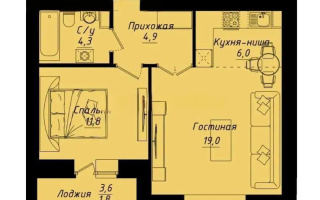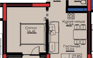 51.1 м², кухня – студия