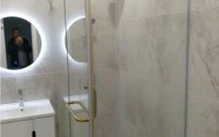 Не угловая квартира-студия с новой сантехникой, счётчиками, тихим двором, капиллярным подогревом пола в ванной, подогревом полотенцесушителя, бойлером 80 л и душевой кабиной; мебель только кухня, ипотека не рассматривается — только наличные.
