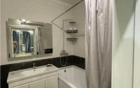 В квартире остаётся мебель и техника, включая двуспальную белую кровать с матрасом, шесть белых стульев, варочную поверхность, духовой шкаф и вытяжку Bosch, а также новую стиральную машину Bosch на 8 кг. Вся сантехника Genebre от испанского производителя.