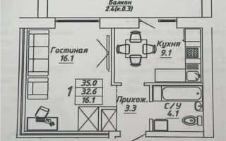 Продам 1-комнатную квартиру. Три окна — есть возможность переделать в 2-комнатную.
