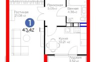 Продажа 1-комнатной квартиры, 42.46 м², мкр-н Гажайып, дом 5/2