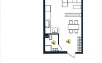 Планировка удачная — два полноценных окна позволяют при желании разделить кухню и комнату перегородкой, создав более функциональное пространство. Окна выходят во двор на северную сторону — тихо и без лишнего солнца.