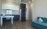 Светлая и тёплая квартира с продуманной планировкой: кухня-студия и отдельная спальня создают комфортное пространство для жизни.