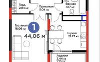 • Большая площадь — 44,06 м² — редкая планировка для однушки