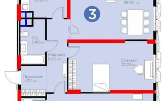 100 м², потолки 3 м