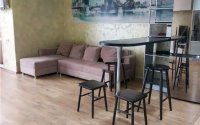 Просторный зал с кухней, отдельный санузел, встроенная кухня, кондиционер. Высота потолков 2,8 м. Дом монолитный с лифтами и подземным паркингом, охрана и видеонаблюдение. Школы, садики, супермаркеты и транспорт — в шаговой доступности.