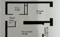 Продаётся 1-комнатная квартира в новом ЖК. Окна выходят на восток.