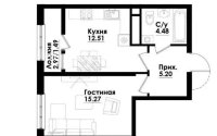 Продажа 1-комнатной квартиры, 39 м², ул. Симферопольская, дом 1/2