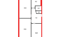 Общая площадь 62 кв.м. Кухня 6 кв.м.