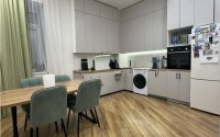 Закрытая территория дома обеспечивает безопасность и уют. Дом отличается высокой теплоизоляцией, а потолки высотой 3,4 м создают ощущение простора, как в квартирах бизнес-класса, с аккуратной отделкой из гипсокартона. Установлена качественная электрика Schneider, в квартире есть встроенная мебель, а окна дополнительно защищены металлическими решетками. В шаговой доступности находится комфортная школа, а рядом строится государственный детский сад.