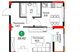 39.42 м² площадь