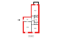 Просторные комнаты, широкий коридор, удобная зона хранения.