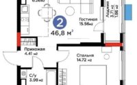 Продажа 2-комнатной квартиры, 46.8 м², ул. Рыскулова, дом 9 стр