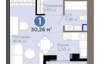 30.26 м², кухня – 6.5 м²
