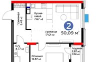 50 м², кухня – 7.67 м²