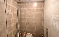 Установлены стеклопакеты на окна, счетчики, трубы и проводка, выровнены стены под чистовую, выставлены перегородки.