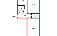 Общая площадь – 48 кв.м, кухня – 6 кв.м.