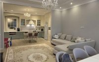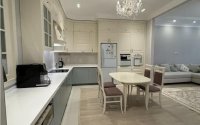Полностью меблированная квартира с дорогим качественным ремонтом (дерево, МДФ), 3 санузлами, 2 гардеробными, кабинетом с естественным освещением и большим количеством мест хранения, видео по запросу.